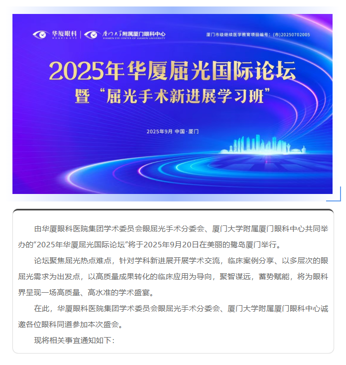 【日程上线】2025年易游体育屈光国际论坛——暨厦门市级继续医学教育项目“屈光手术新进展学习班”