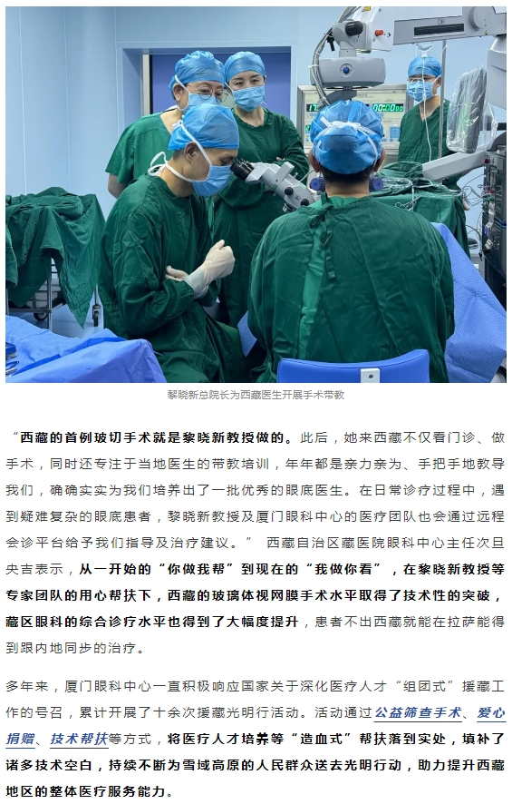 跨越山海的医疗协作 厦门眼科中心助力藏区眼科水平不断提升