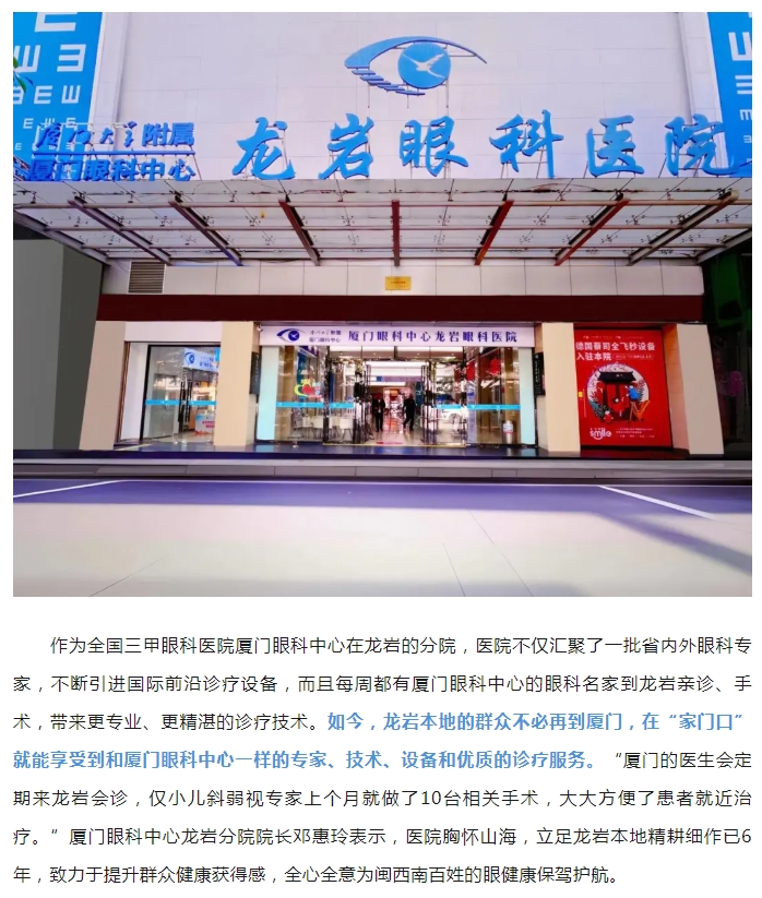厦门眼科中心龙岩分院助推厦龙山海协作,获两地官媒头版报道点赞!