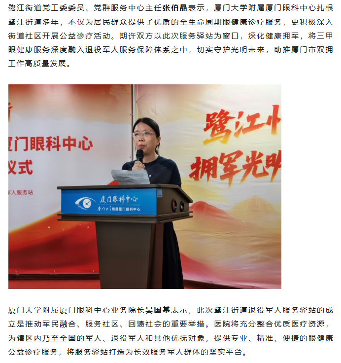 搭建健康拥军新平台,鹭江街道退役军人服务驿站落户厦门眼科中心
