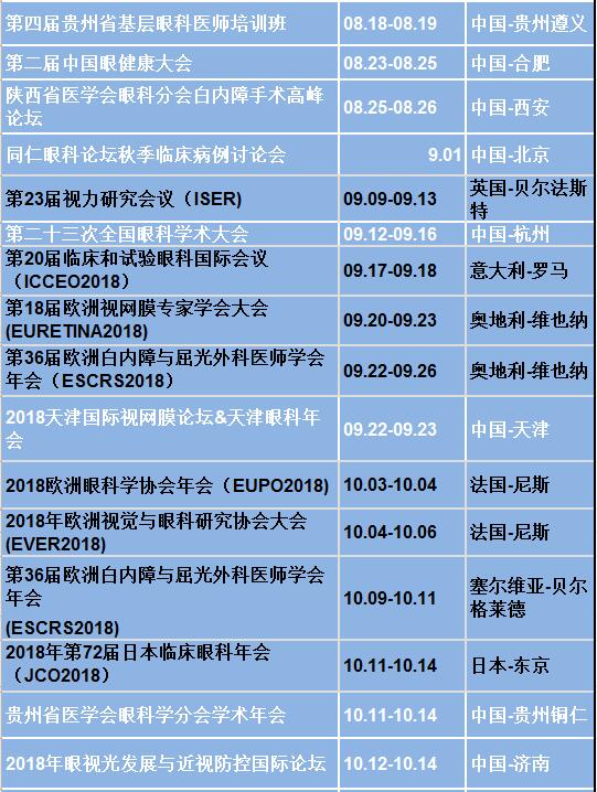 易游体育行业资讯:2018年全国内外出名眼科年会日程已出炉。