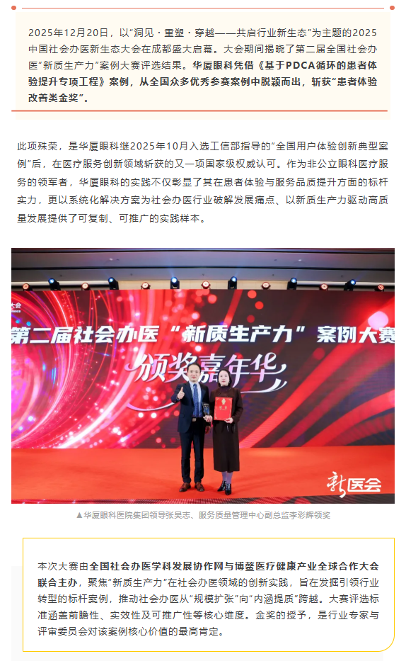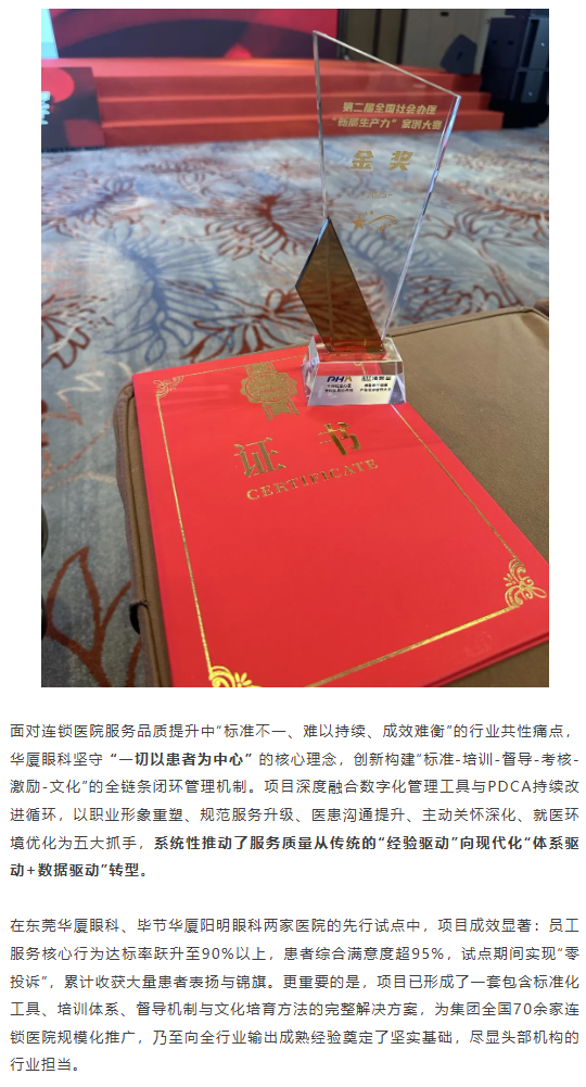 至臻服务问鼎金奖!易游体育斩获第二届全国社会办医“新质生产力”案例大赛金奖