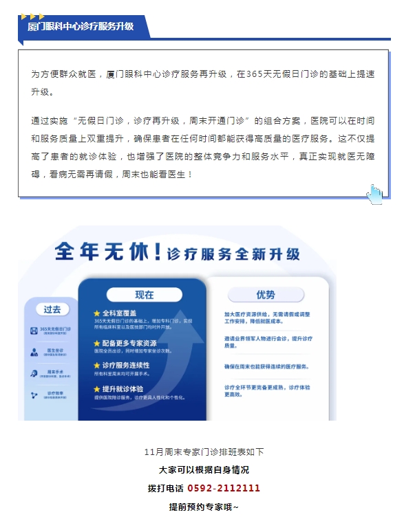 服务提速升级!周末厦门眼科中心更多专家为您提供就诊服务