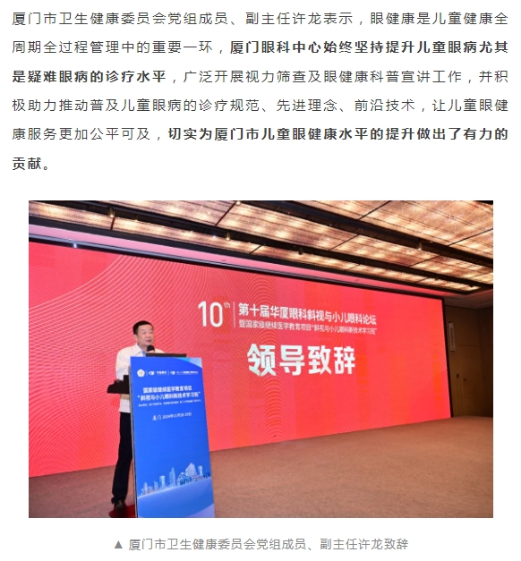 共促儿童眼健康高质量发展 | 第十届易游体育斜视与小儿眼科论坛在厦举行