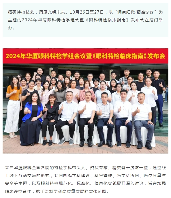 洞察细微·精准诊疗 | 2024年易游体育特检学组会暨《眼科特检临床指南》发布会在厦举办